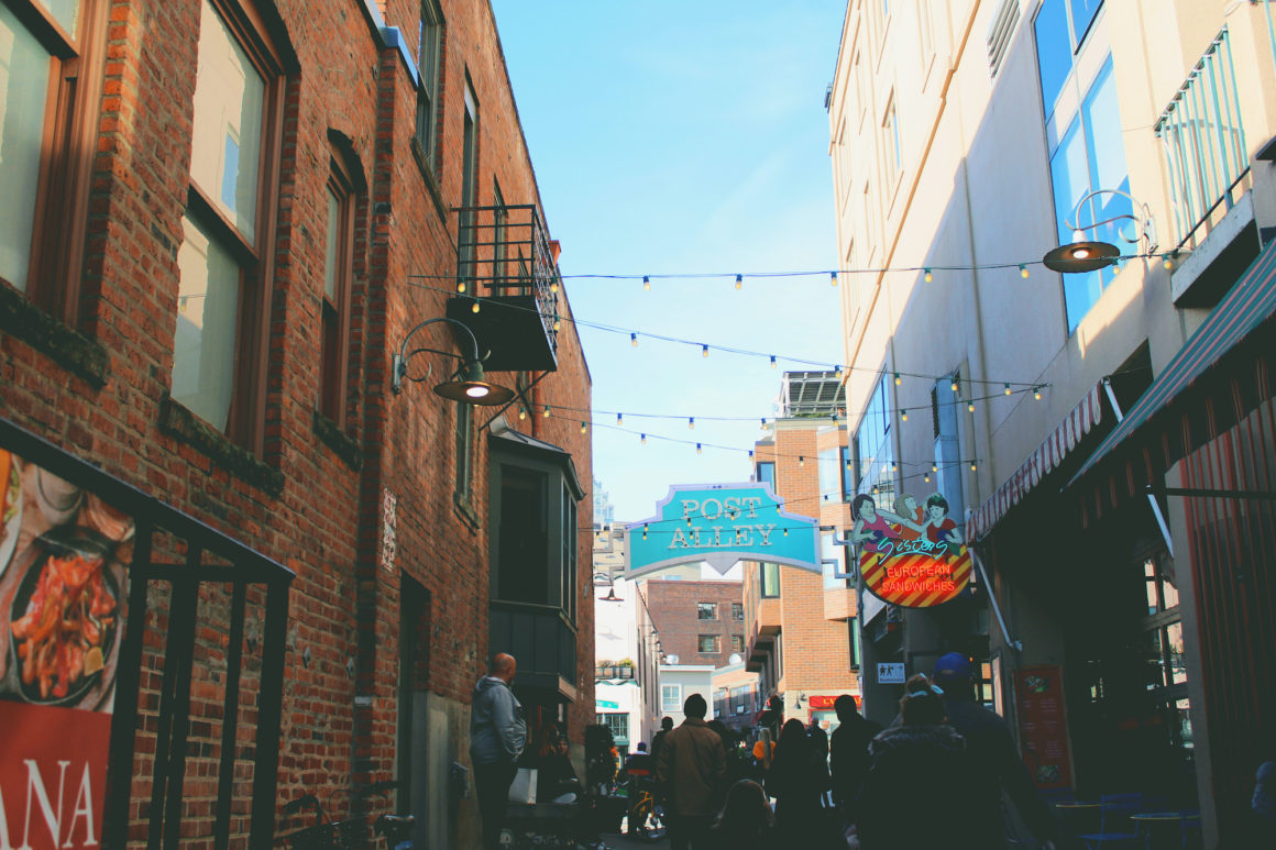 - Tip: Come at night and enjoy an intimate burlesque show. There is no signage for the Pink Door restaurant as it literally is just a pink door down the Post Alley (picture above). Don’t worry once you open the door, you’ll soon realize it’s not a secret backdoor to someone’s home, but an entrance to a nice restaurant.